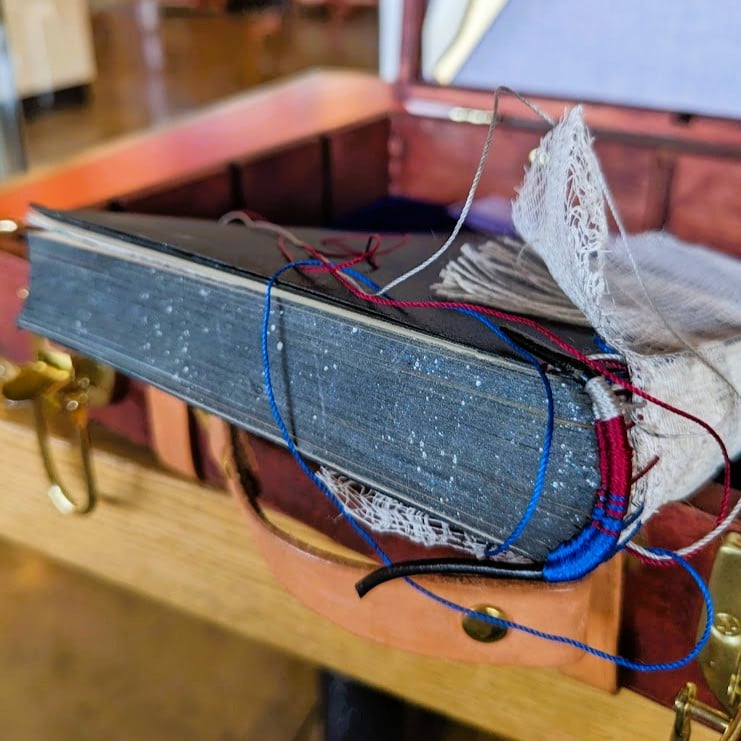 This black leather lace is the perfect foundation for tying endbands. It's cut from vegtable tanned leather, rounded, stained, and waxed.