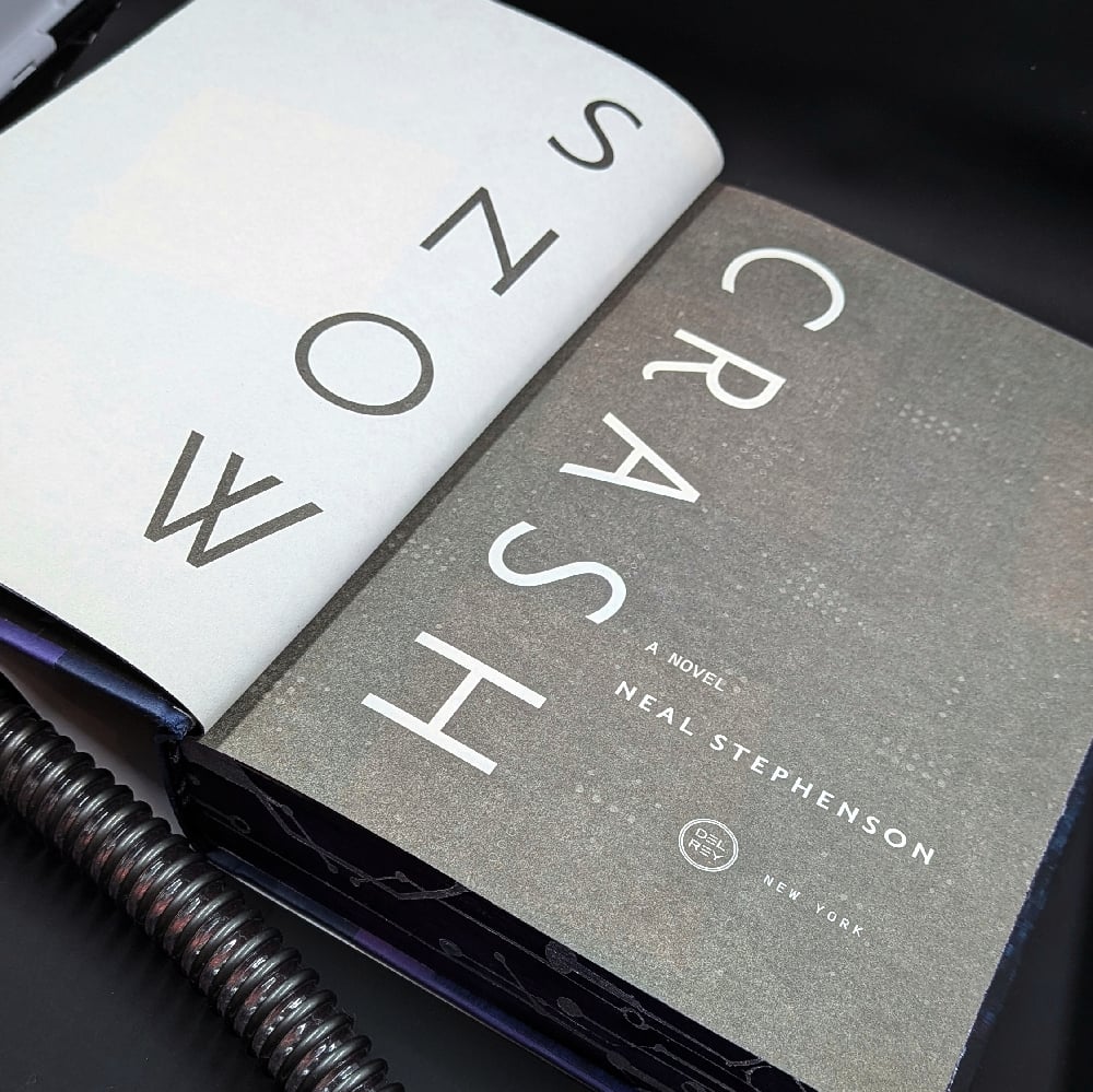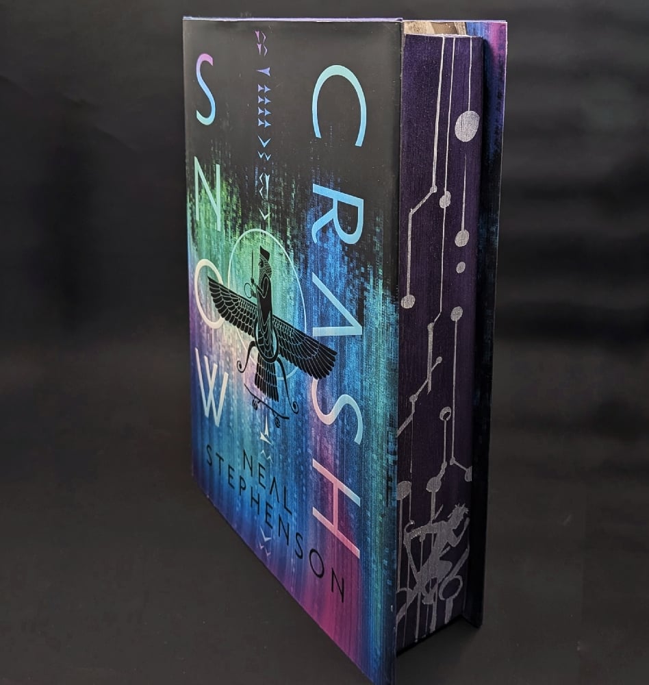 Hardcover deluxe 30th anniversary edition of Snow Crash by Neal Stephenson, further customized with stenciled edges by Starblight Bindery.